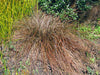 Carex Flagellifera Red - A very popular medium grass with rich bronze/ blood red colour. Upright form. Good contrast - texture plant. Hardy in very cold climates and drought conditions. Mature height 60cm x Width 60cm