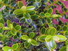 Glossy yellow-green leaves arranged along arching stems, providing bright year-round colour and a refined texture.