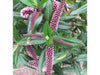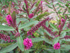 Hebe Wiri Blush is a showy, larger, very fast growing hebe. It has glossy large dark green leaves with striking megenta borders and stems, and large racemes of magenta-purple flowers. Flowering occurs from January through to Autumn and is a magnificent sight.
