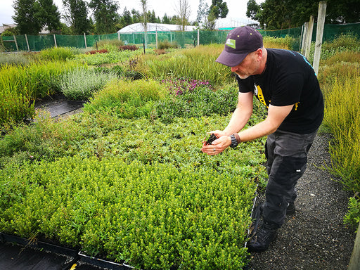 Olearia range from very small compact bushes, such as Olearia nummularifolia and Olearia haastii, to quite big shrubby trees such as Olearia traversii (Chatham Island Ake Ake) and Olearia paniculata (Golden Ake Ake). The look of Olearias differs a lot and there is huge variety available. Some have small needle like leaves, some are big and leafy, and there is a huge range in between.