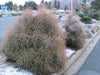 Foliage: Tiny pale green leaves spaced along slender zigzag branchlets; semi-transparent effect.