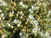 Abundant tiny white flowers with a delicate yellow centre in spring and summer. Light, airy, and eye-catching when in full bloom.