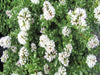 Abundant white flower clusters produced from spring to autumn, attracting bees and beneficial insects.