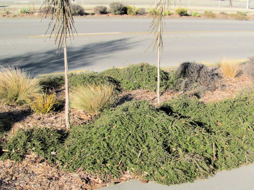 Groundcovers or low-growing natives (where appropriate): In somewhat sheltered or partially protected exposed sites, plants like Muehlenbeckia complexa (wire vine / pohuehue) or prostrate/divaricating shrubs of Coprosma lineage can help knit together soil, suppress weeds and reduce erosion — especially useful on dunes or slopes where full shrubs/trees are less ideal.