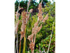 Open, airy clusters of pale brown flowers held to the side of the stem in summer. Adds soft texture above the foliage.