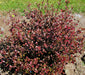 Small, glossy, rounded leaves in rich burgundy-red shades. New growth often emerges brighter red before deepening to dark plum. Foliage colour intensifies in cooler weather and full sun.