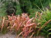 Striking variegated leaves with alternating bands of coral pink, soft red, apricot, lime and green. Upright-arching, strappy foliage adds movement and colour contrast throughout the year. Colour holds strongly in full sun.
